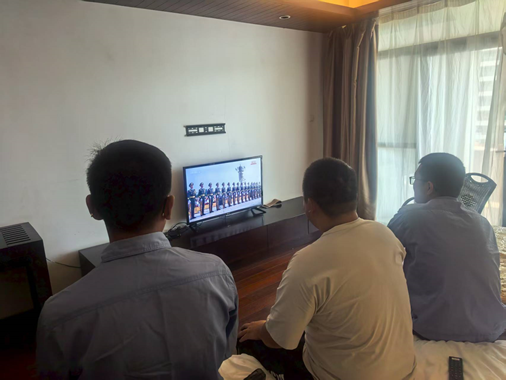海南外场试验和机组人员观看阅兵