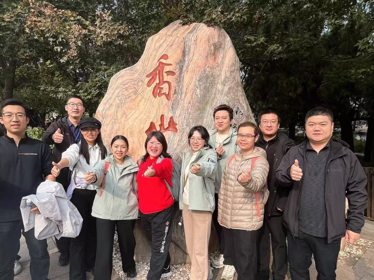 当日清晨,大家抵达香山公园,此时的香山正值红叶观赏期,红、橙、黄、绿交织辉映,构成一幅绚丽斑斓的秋日画卷。大家沿着登山步道拾级而上,既有健步如飞的快步前行,也有驻足观景的从容惬意。登山过程中,大家相互鼓劲、彼此照应,充分展现了科技工作者团结协作、勇攀高峰的精神风貌。