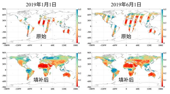 “当前填补缺失数据主要有两类方法:一类是传统插值法,依赖已知数据推测缺失区域,适用于小范围缺失,但在大片空白区容易失效;另一类是基于大数据分析的机器学习方法,能够通过分析全球数据,寻找土壤水分与降雨、植被等因素间的联系来进行预测,但结果容易趋向‘平均’,难以准确反映特别干旱或湿润地区的真实情况。”曾江源介绍。