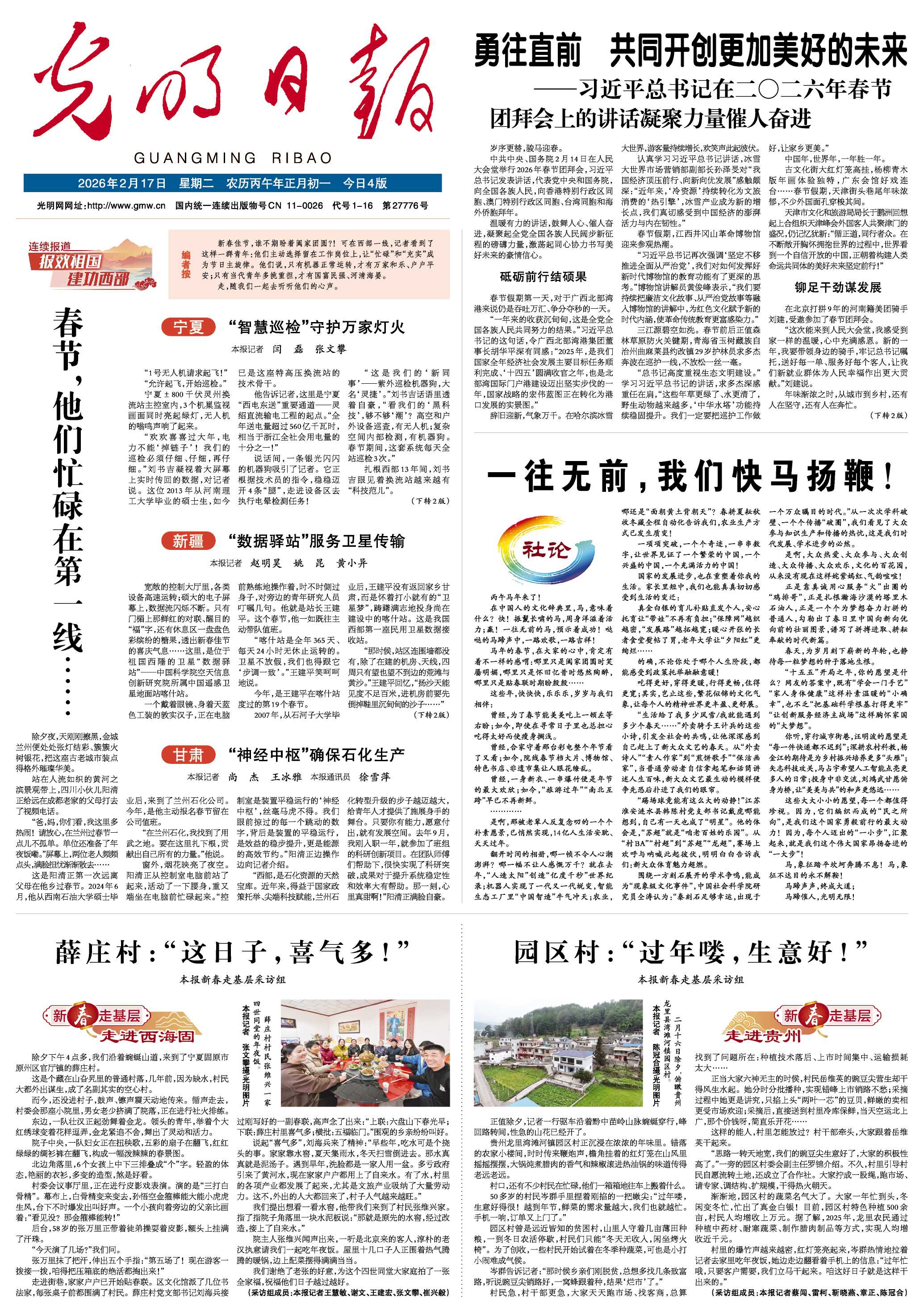 新春佳节,谁不期盼着阖家团圆。可在西部一线,记者看到了这样一群青年:他们主动选择留在工作岗位上,让“忙碌”和“充实”成为节日主旋律。他们说,只有机器正常运转,才有万家和乐、户户平安;只有当代青年多挑重担,才有国富民强、河清海晏。