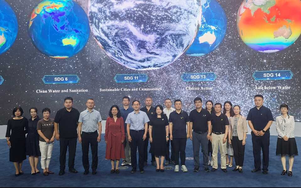 参观团队沉浸式体验了卫星遥感、数字地球等前沿技术成果。三维可视化系统动态展示全球可持续发展目标(SDG)监测数据;空天科技展厅则呈现了卫星研制、遥感应用等创新成果,生动展现了我国空天科技的先进水平。