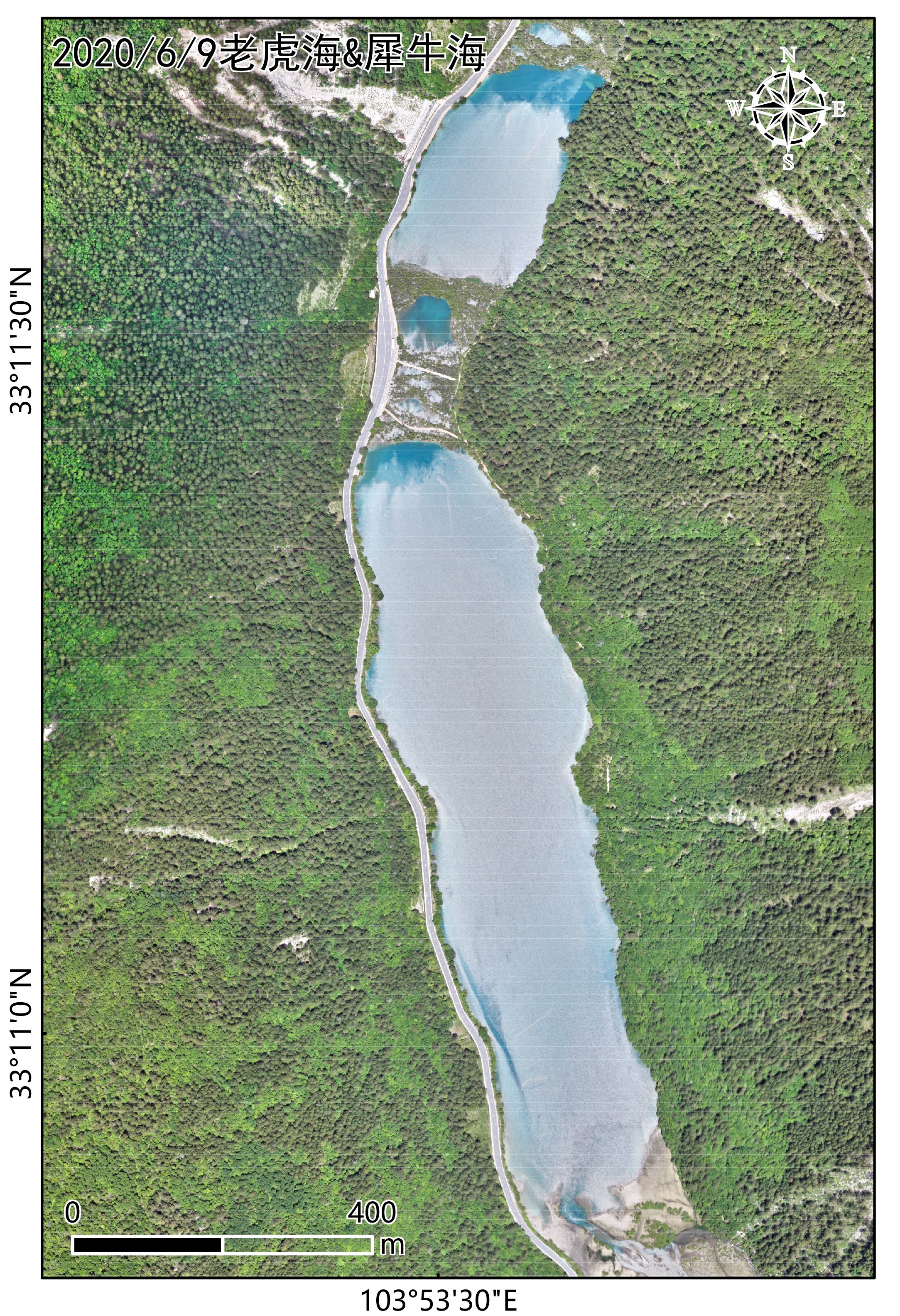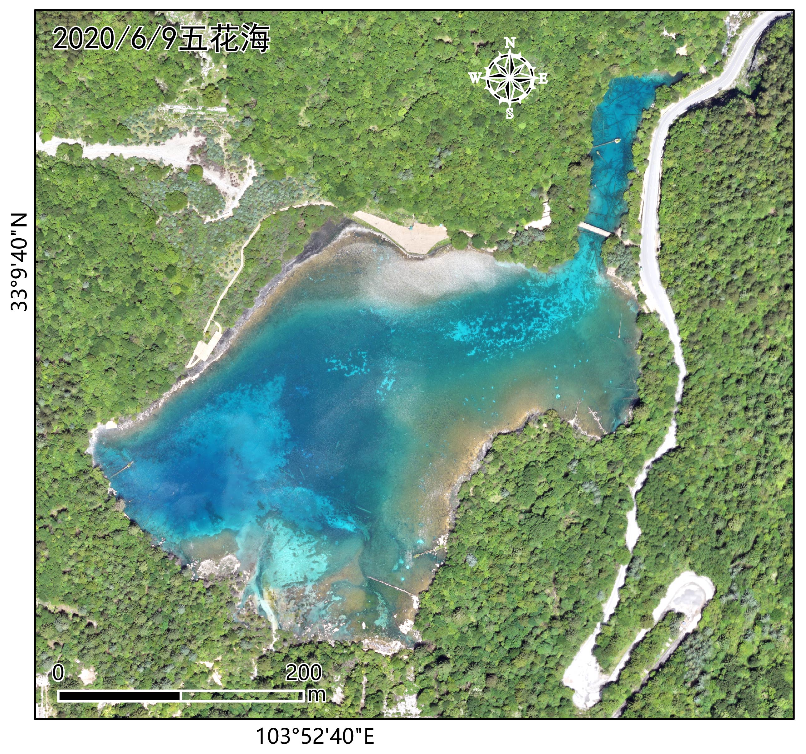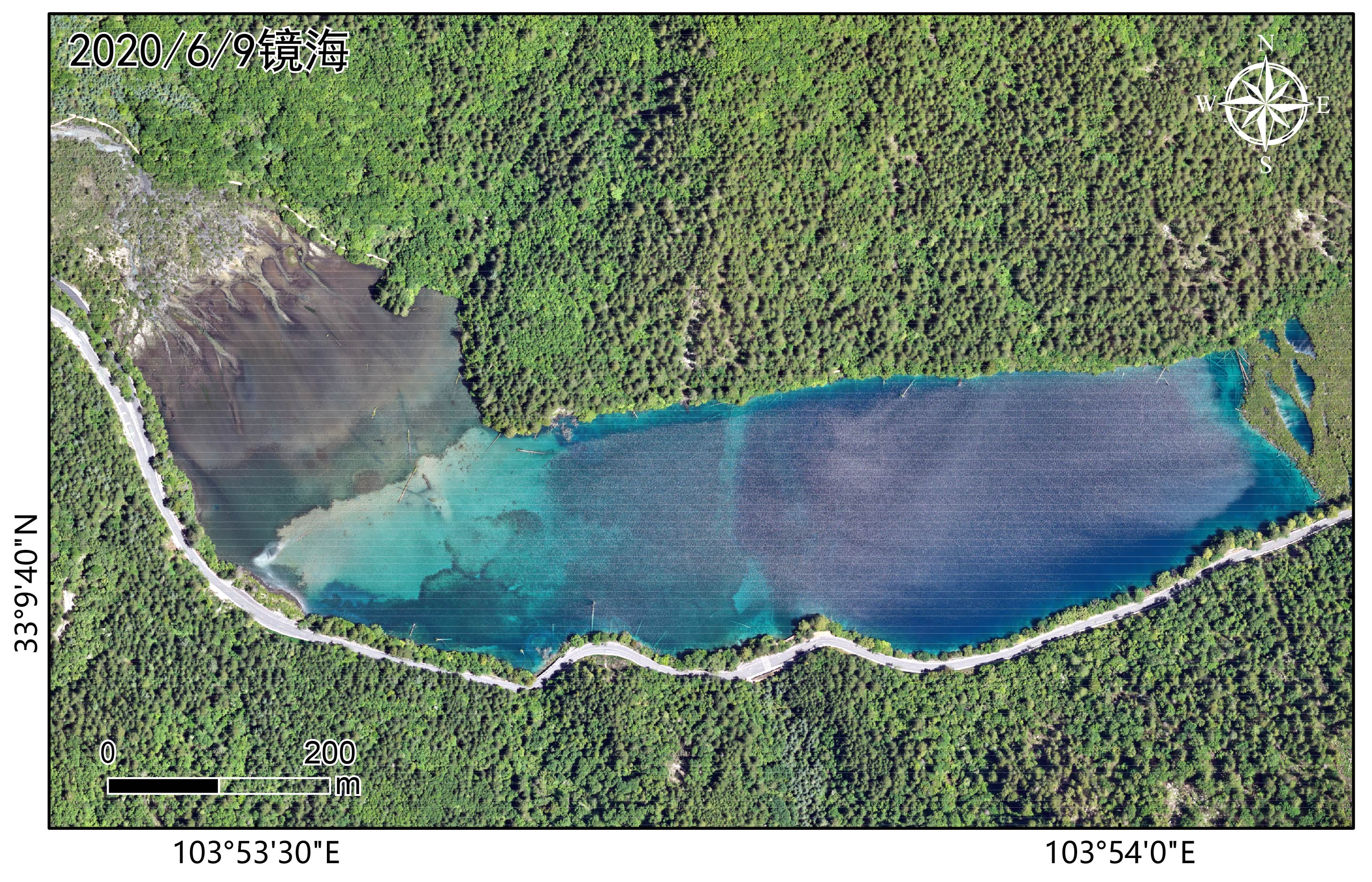 同时,该研究团队通过高精度无人机数字正射影像进行九寨沟核心遗产点水体面积精细提取,解译得到经过三年的恢复重建,其他海子水体面积也逐渐扩大,景观逐渐恢复昔日风采,其中,熊猫海面积8.45 公顷、箭竹海面积15.32公顷(图4)、镜海面积17.73公顷(图5-6)、诺日朗群海面积2.38公顷(图7)、犀牛海面积21.86公顷(图8-9)。