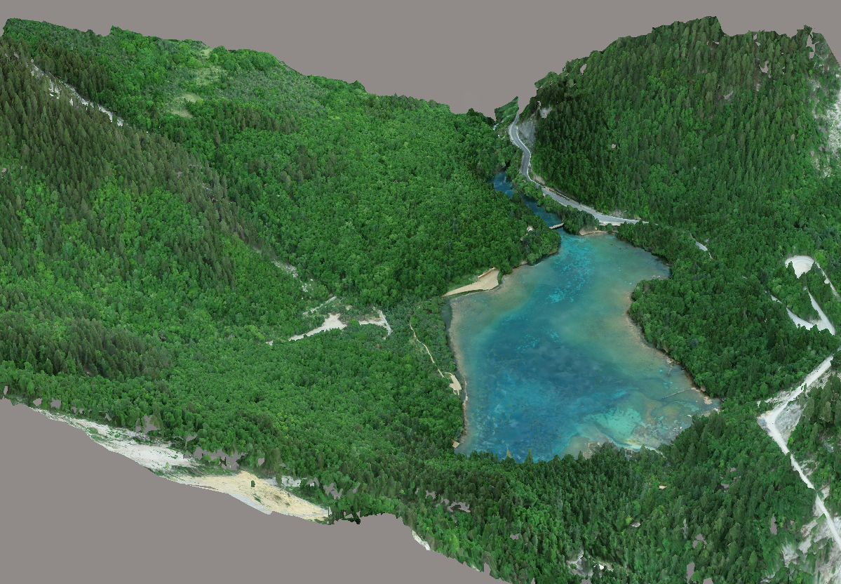 针对九寨沟丰富的自然景观,付碧宏团队利用三维激光雷达扫描技术,对重要的大型遗产场景进行全方位的空间信息采集;利用无人机航测技术,对遗产场景进行高分辨率成像,对遗产场景负载的纹理信息进行采集;综合雷达扫描数据和无人机航测影像,对遗产场景进行几何建模和纹理图像处理,初步完成重点遗产点场景高精度数字模型的构建(图10)。通过开展科学监测和评估工作,为世界自然遗产地遗产点科学有序地开展地质灾害治理、植被生态和水体环境的恢复和保护工作提供了重要科学数据和技术支撑。