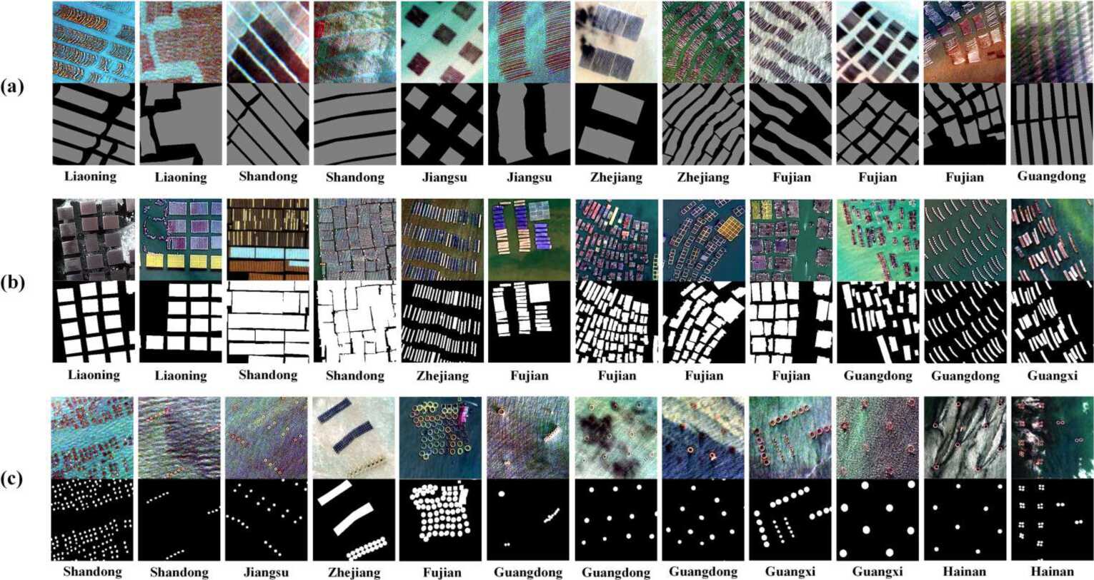近海海洋养殖区在遥感影像中的精准提取与动态监测,对优化近海养殖布局和评估海洋生态环境具有重要意义。目前,基于遥感影像构建的国家级海水养殖空间分布数据集多为中低分辨率,尚缺乏高空间分辨率产品。