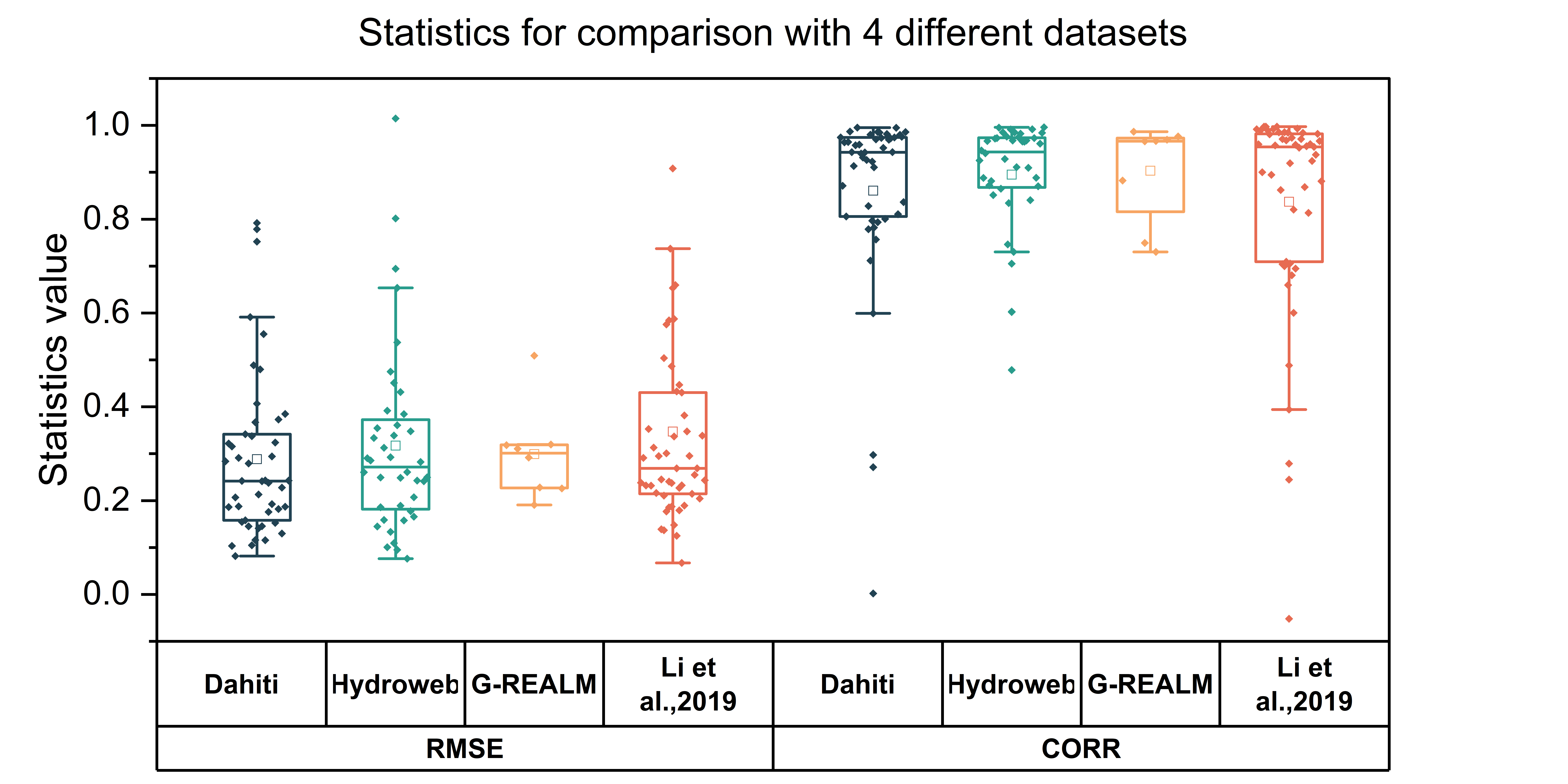 研究团队创新性地融合Envisat、ICESat-1、CryoSat-2、Jason-1/2/3、SARAL和Sentinel-3A等八颗卫星的观测数据,突破了单一卫星时空覆盖范围的限制。其中181个湖泊具有2002-2021年连续20年的水位序列,180个湖泊具有2010-2021年水位序列。该数据集与实地测量值高度一致,八个验证点的中位数均方根误差仅为0.19米。同时,与DAHITI、Hydroweb和G-REALM等国际主流卫星测高产品相比,中位数均方根误差均低于0.30米,达到了国际先进水平。