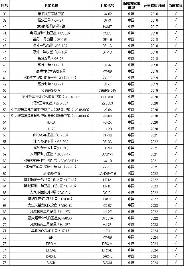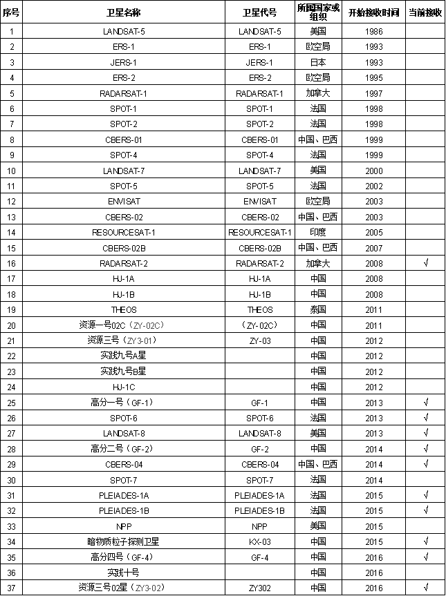 1、建设有密云、喀什、三亚、丽江、漠河5个卫星数据接收接收站,共计38部卫星数据接收天线,建站至今承担的国内外卫星任务达76颗。