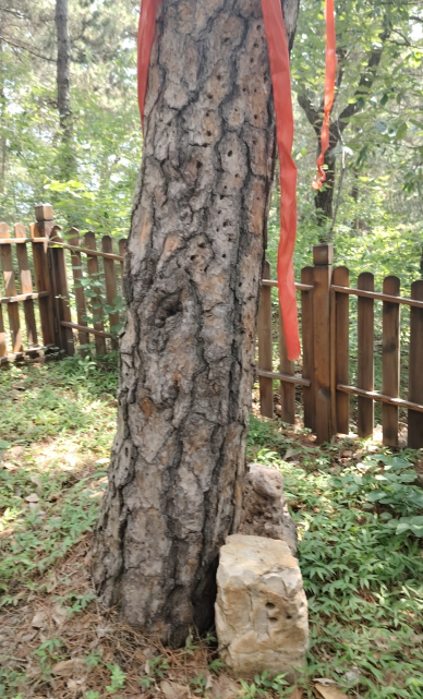 战斗遗址树上一排枪眼,是当年敌我双方机枪扫射时留下的痕迹。