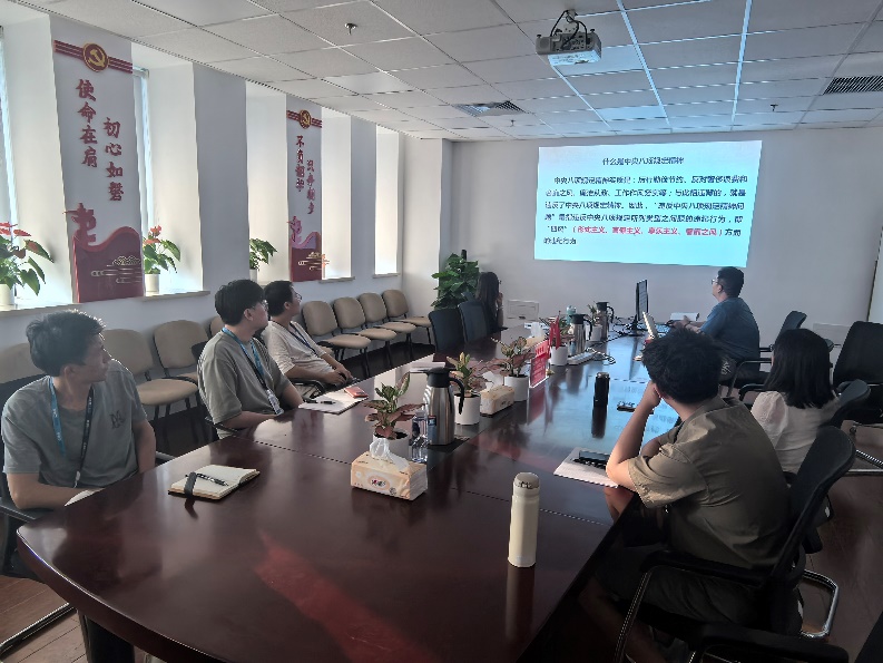 二部李倩倩副主任强调,首先提高政治站位,深刻认识八项规定是必须长期坚持的铁规矩,始终与党中央保持高度一致。工作遇到问题必须坚持问题导向,对照八项规定自查自纠,重点整治隐匿变异问题。支部的各位党员干部要以身作则,发挥表率作用,带头树新风,形成“头雁效应”。