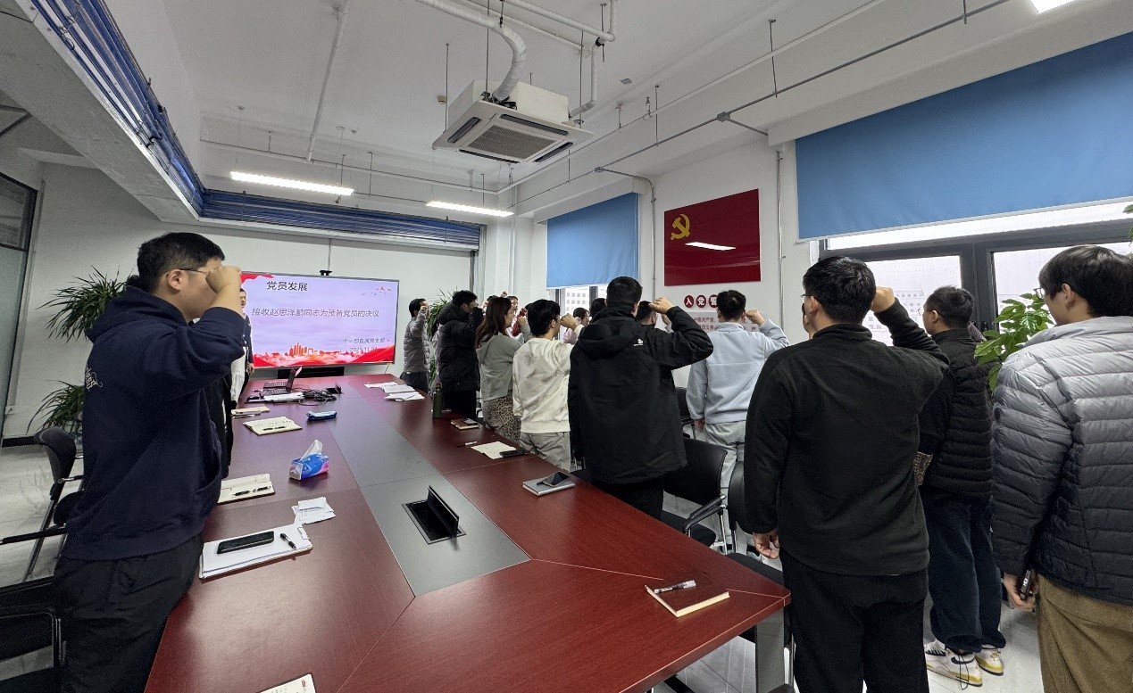 紧接着,赵思泽鹏同志宣读了入党志愿书,他结合自身经历,分享了在党组织的培养教育下,思想觉悟不断提升、工作能力持续进步的过程,表达了紧跟党的步伐、践行初心使命的坚定信念。张瑞同志随后介绍了赵思泽鹏同志的政审情况,确认其符合入党相关要求。