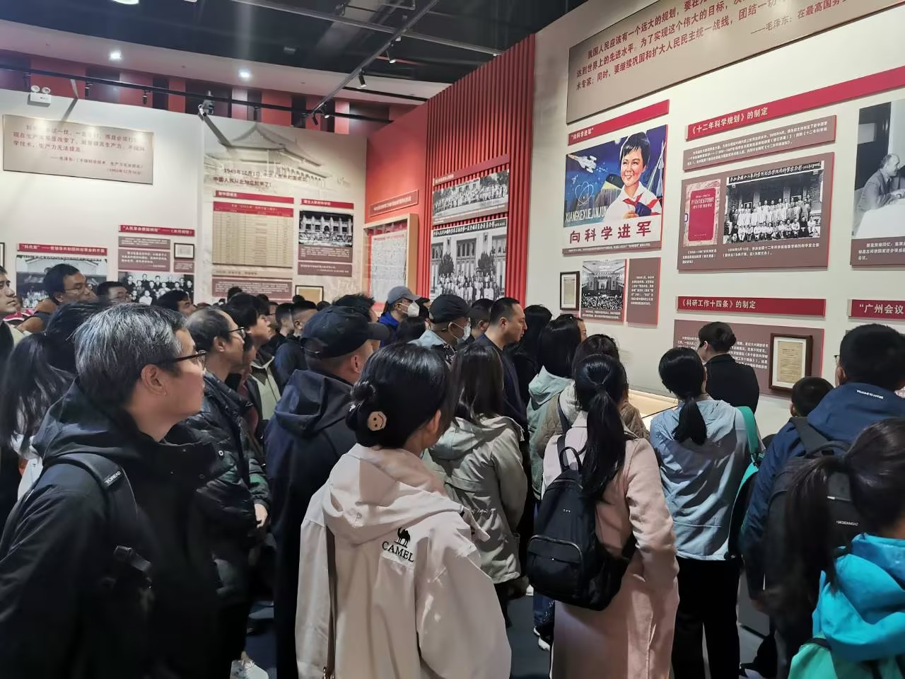 上午,大家参观了中国科学家博物馆。在大型融媒体主题《先生》展览中,多位中国近现代杰出科学家的生平事迹和学术成就展现在每一幅生动的照片和实物中,他们的卓越贡献,他们的报国情怀,他们的名言警句,像燃烧的火焰一样感染着现场每一个人。随后,大家参观了“共和国脊梁——中国科学家博物馆馆藏精品展”。钱学森、邓稼先、朱光亚、屠呦呦等科学家的手稿、书信、证书、工作记录等珍贵展品,让大家心中的科学家精神不断丰富、鲜明和具体。最后,大家集中观看了《中国科技文明展——问天逐梦》纪录片,身临其境地感受了中国航天科技的历程和“问天筑梦”的雄心壮志。