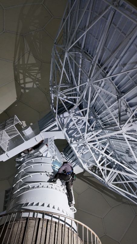 除雪是冬季运行的重要工作。为保障数据接收质量,每部天线罩需及时清除积雪,值守人员通过拽动除雪绳作业,雪厚时往往浑身湿透、体力耗尽。但当看到“飞起玉龙三百万”的雪沫在蓝天中飞扬,大家总能从中寻得空天人独有的诗意与力量。这份坚守换来了丰硕成果:2025年5月,漠河站一期基建项目基本完成;6月5日,顺利通过系统现场验收评审;12月12日,正式投入运行。