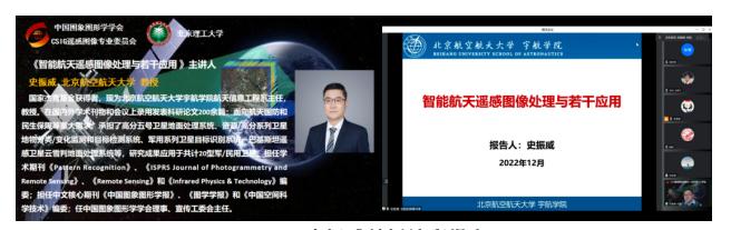 史振威以“智能航天遥感图像处理与若干应用”为题,围绕智能航天遥感图像处理,以像素尺度-目标尺度-广域尺度的智能处理为主线,结合不同实际应用任务,基于不同遥感图像开展智能解译案例讲解,包括基于遥感大数据的影像智能信息提取及土地变化检测系统和高精度云判系统等。
