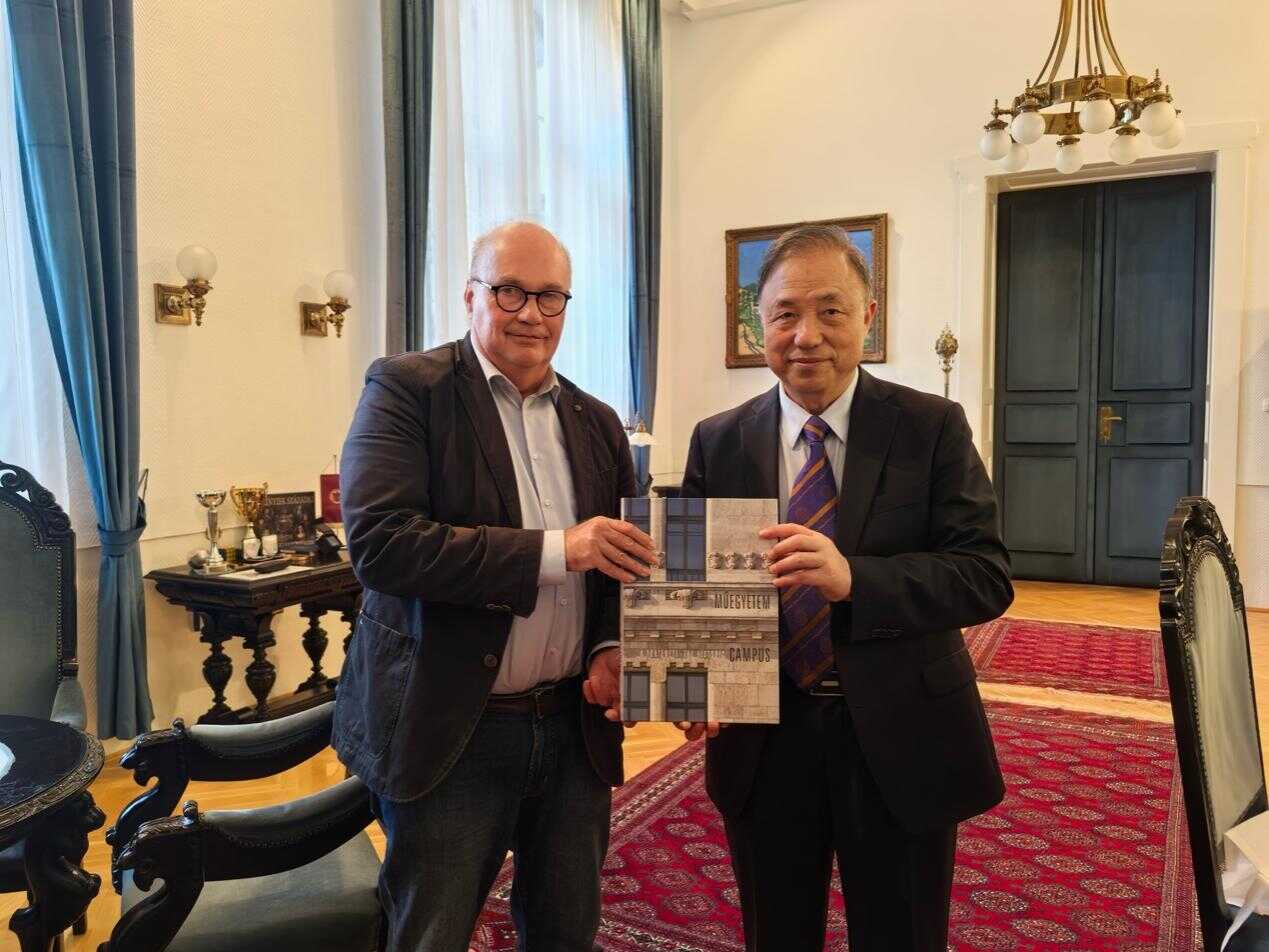 郭华东院士与布达佩斯技术与经济大学副校长雅诺什·莱文多夫斯基(Janos Levendovszky)合影
