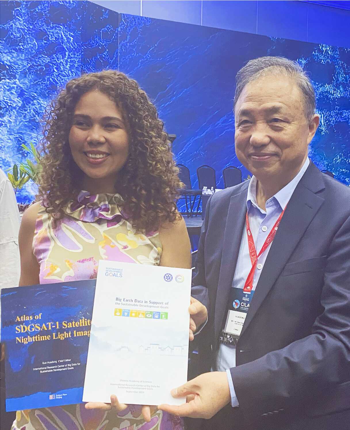 会议期间,郭华东向哥伦比亚科技创新部部长Yesenia Olaya赠送《地球大数据支撑可持续发展目标报告(2024)》和《SDGSAT-1卫星微光影像图集》,并围绕可持续发展科研合作、卫星数据共享等进行交流。