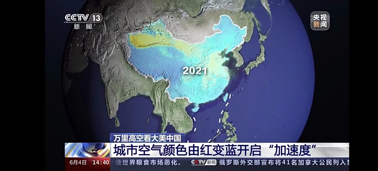 6月5日,第51个世界环境日来临之际,中央电视台报道了生态环境部卫星环境应用中心生态地球展示的全国PM2.5最新卫星图像。该报道中引用的2021年全国1km PM2.5最新卫星监测数据由空天信息创新研究院遥感科学国家重点实验室陈良富研究员带领的大气环境遥感团队(陶金花、范萌、张莹、余超、顾坚斌和李明戈等组成)提供。
