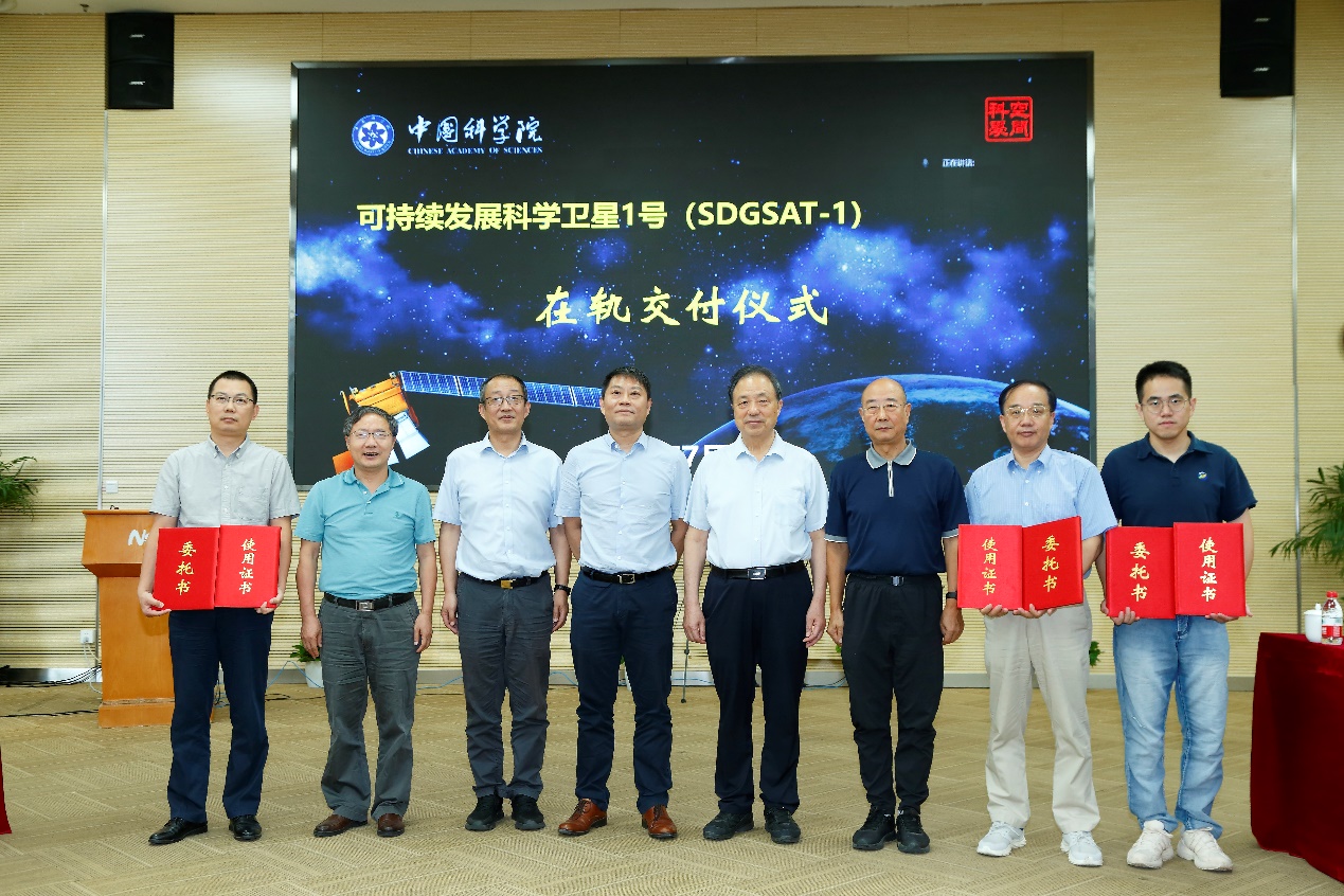SDGSAT-1在轨测试阶段完成了卫星系统、地面系统和星地一体化测试,卫星运行稳定,状态良好,各项功能、性能符合研制总要求,具备了开展科学应用的条件。交付仪式上,科学应用系统常务副总师李晓明研究员作了卫星在轨测试总结报告。中科院空天信息创新研究院、中科院微小卫星创新研究院、西安卫星测控中心、中科院国家空间科学中心等单位相关领导在卫星在轨交付使用证书上签字。