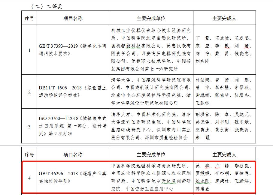 国家标准《遥感产品真实性检验导则》获2022年度中国标准创新贡献奖二等奖
