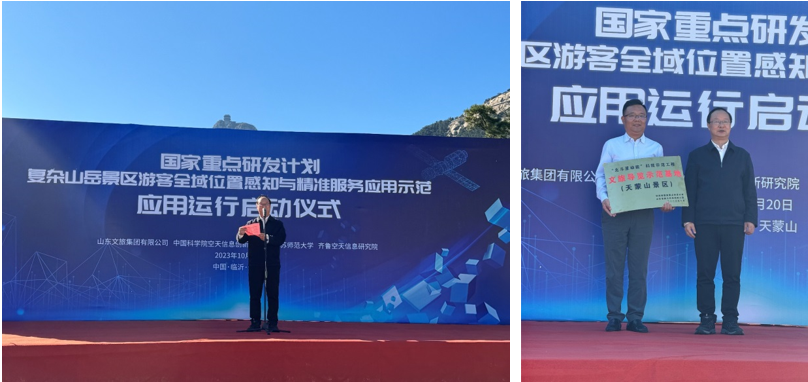 10月20日,由中国科学院空天信息创新研究院(空天院)牵头承研的国家重点研发计划“北斗智能精准定位技术集成及区域服务业创新示范”项目,在山东天蒙景区举办“复杂山岳景区游客全域位置感知与精准服务”课题文旅导览应用运行启动仪式。活动由空天院指导,山东文旅集团有限公司主办。