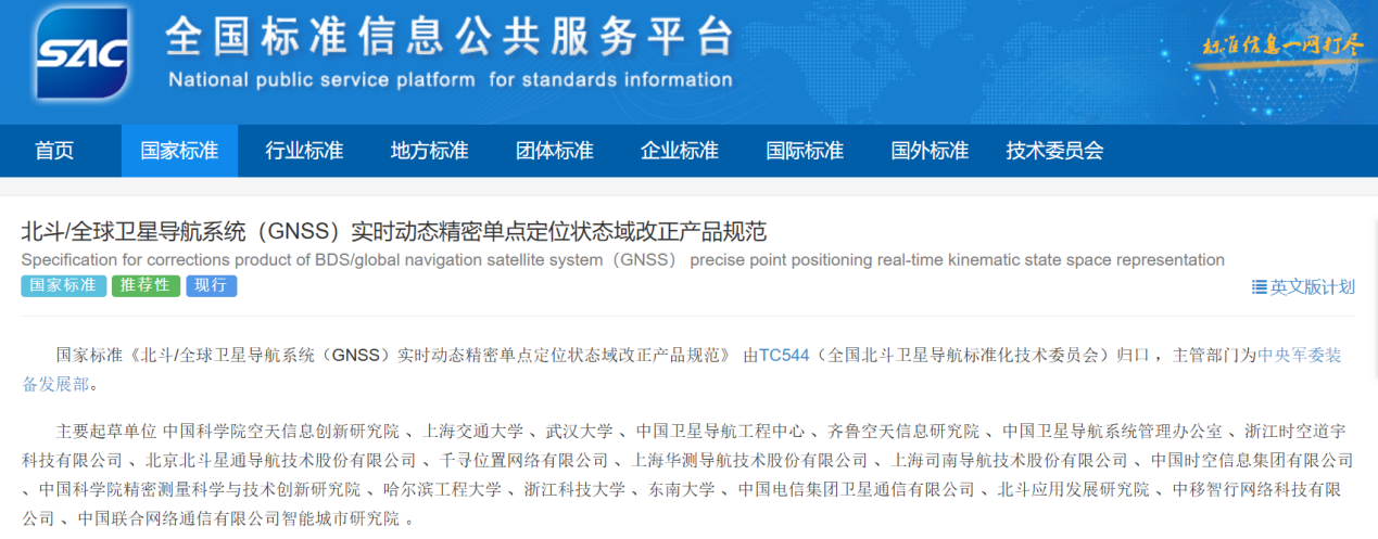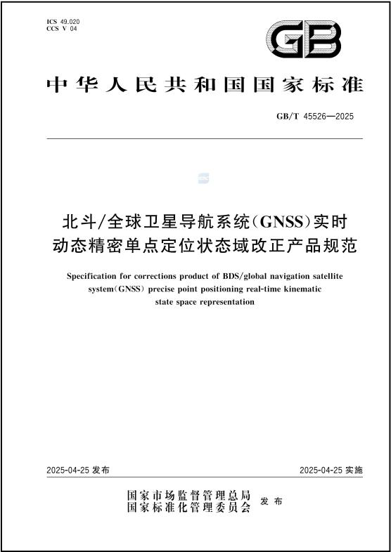 4月25日,由中国科学院空天信息创新研究院(空天院)牵头起草的国家标准《北斗/全球卫星导航系统(GNSS)实时动态精密单点定位状态域改正产品规范》(标准号:GB/T45526-2025)正式发布并实施。