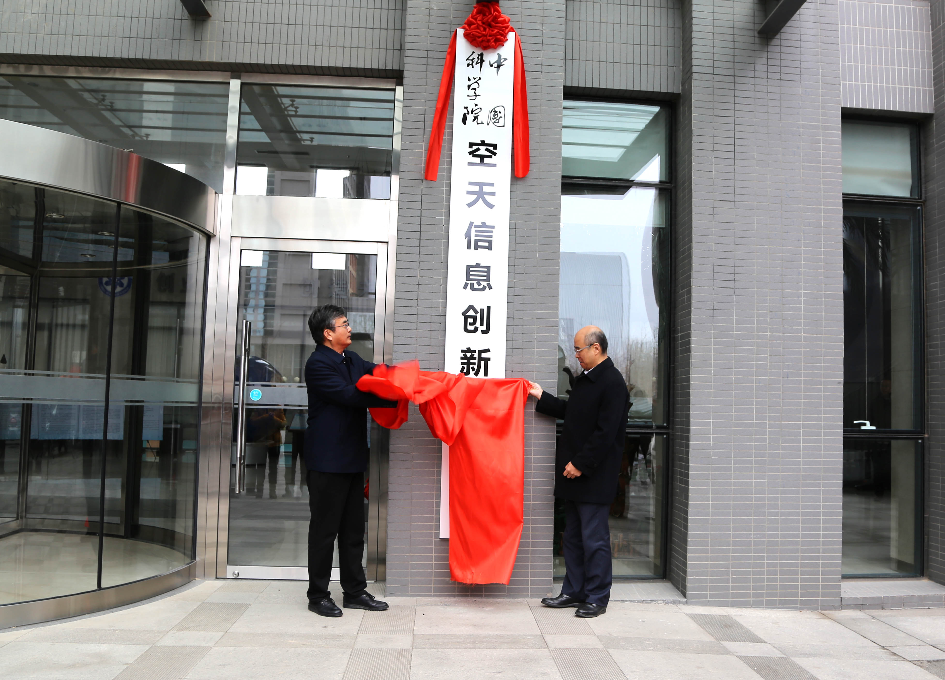 中科院副院长、党组成员、空天院理事会理事长相里斌,空天院院长、理事会副理事长吴一戎共同为空天院揭牌