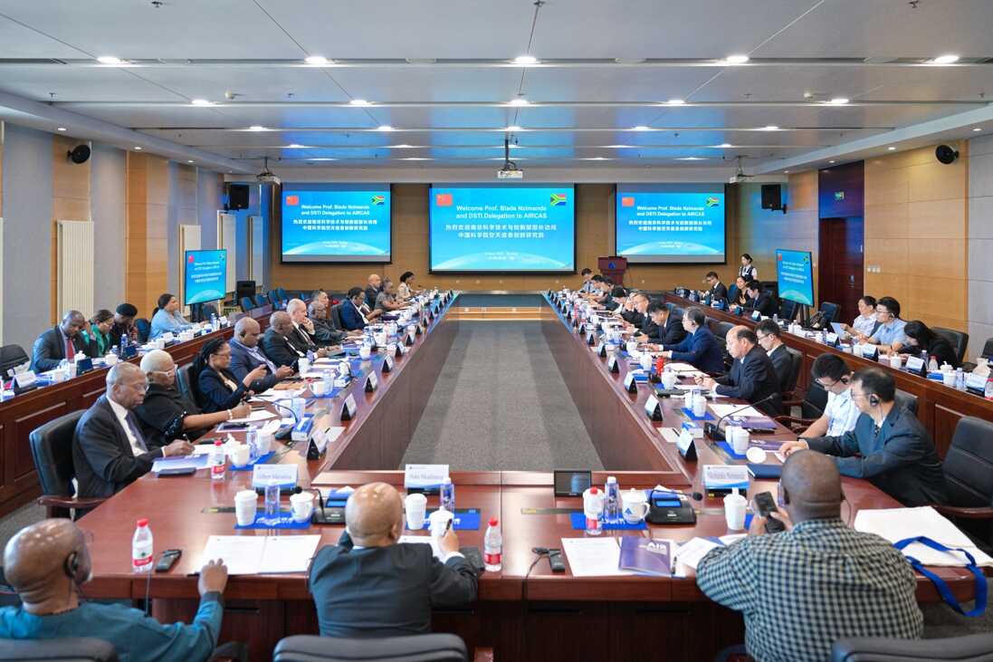 6月8日,南非科学与创新部(DSTI)部长布莱德·恩齐曼迪(Blade Nzimande)一行访问中国科学院空天信息创新研究院(空天院)。南非代表团由DSTI高级官员以及南非国家航天局(SANSA)等多家单位的23名代表组成。中国科学院副院长何宏平院士,中国科学院国际合作局副局长王振宇,空天院党委书记、副院长张兵,吴一戎院士等出席接待。工作交流会议由张兵主持。