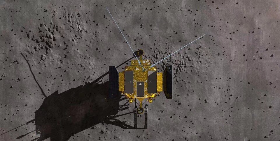 嫦娥四号着陆器低频射电频谱仪天线月面实地展开图