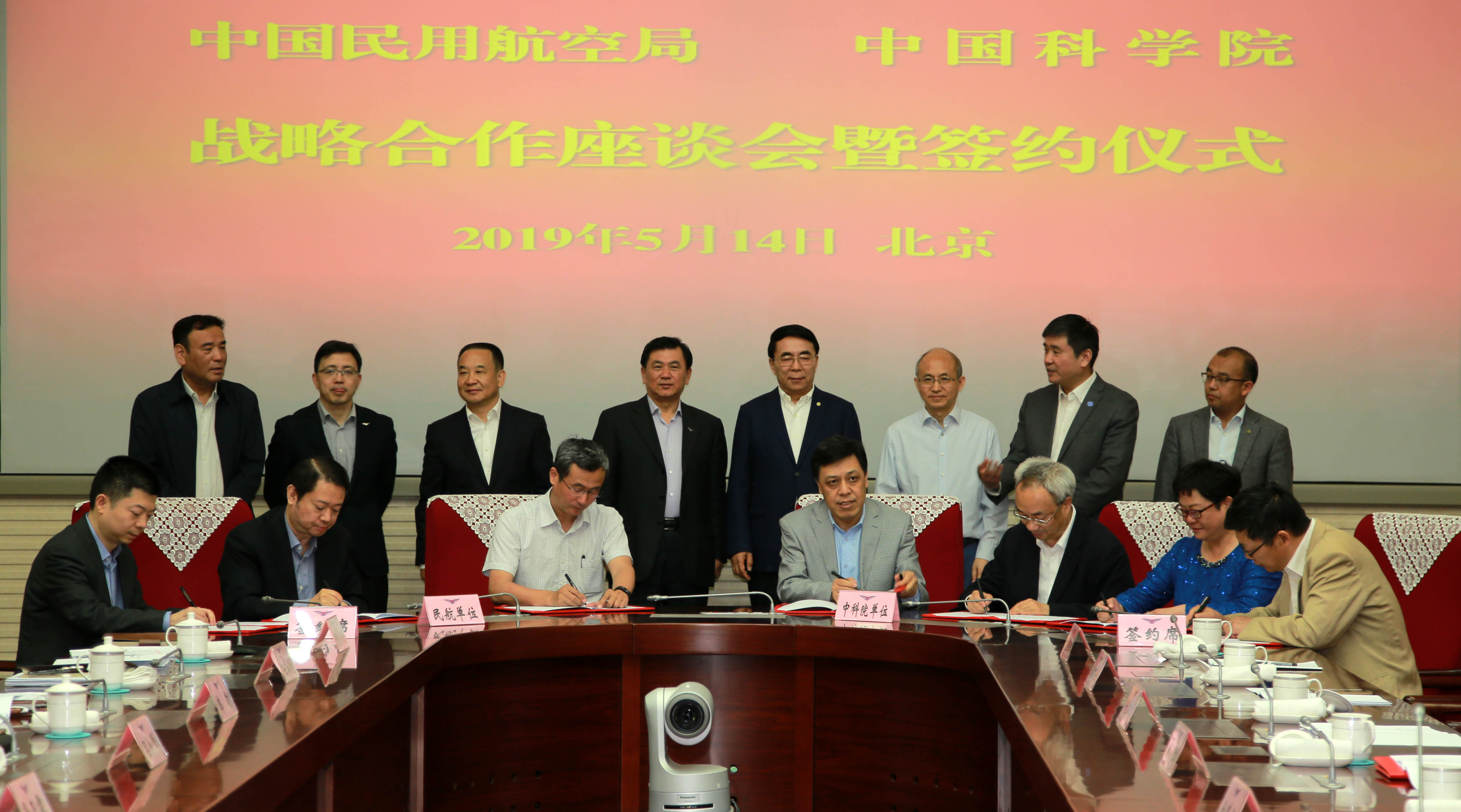 中国民用航空局副局长、党组成员吕尔学主持座谈会。中国科学院办公厅、重大科技任务局、科技促进发展局和院属相关单位负责人,以及中国民用航空局相关部门负责人参加签约仪式。