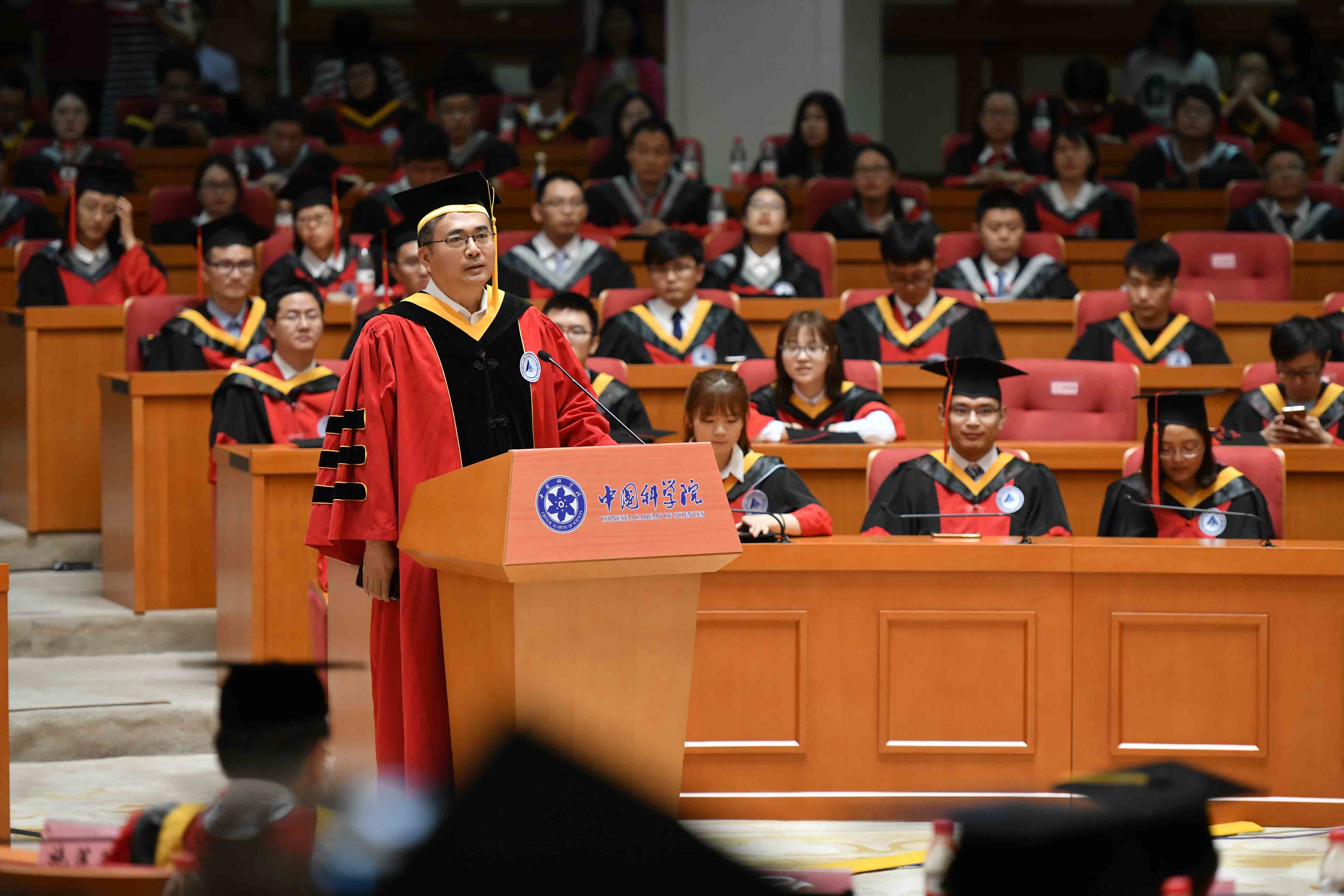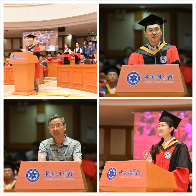 接着,中科院院长奖获得者、优秀毕业生代表王棵发言。她分享了自己5年求学中百感交集的心路历程,表达了对导师、家长和同学们的深情感激,深感博士研究生期间的学习时光将终生受益,并对未来充满了美好的期待。王棵生动活泼的语言、真挚情感的自然流露勾起了现场毕业生的美好回忆,引起了强烈的共鸣。