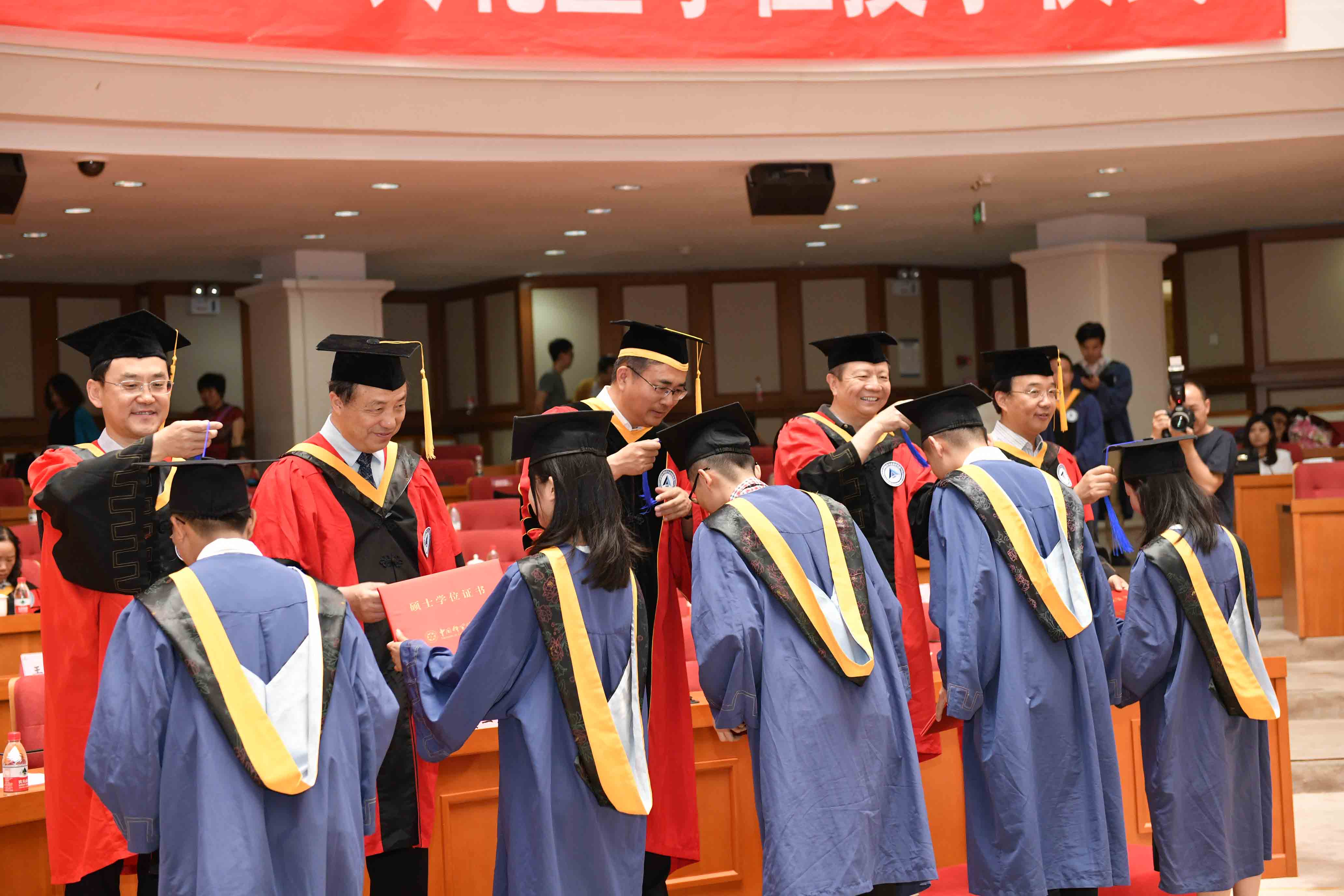 最后,激动人心的学位授予仪式正式开始,赵忠明宣读《空天院2019年拟授予学位决定》。在雄壮的加冕进行曲和全场师生与来宾的注目下,毕业生们逐一上台,接受学位委员会委员的扶正流苏及颁发的毕业证书。