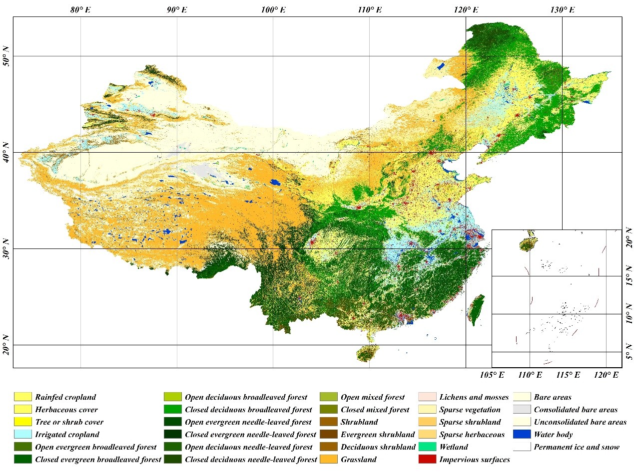 地表覆盖分布是气候变化研究、生态环境评估及地理国情监测等不可或缺的重要基础信息。近年来,随着卫星遥感和计算机存储与计算能力的不断增强,全球尺度中高分辨率地表覆盖产品的应用需求日益迫切。