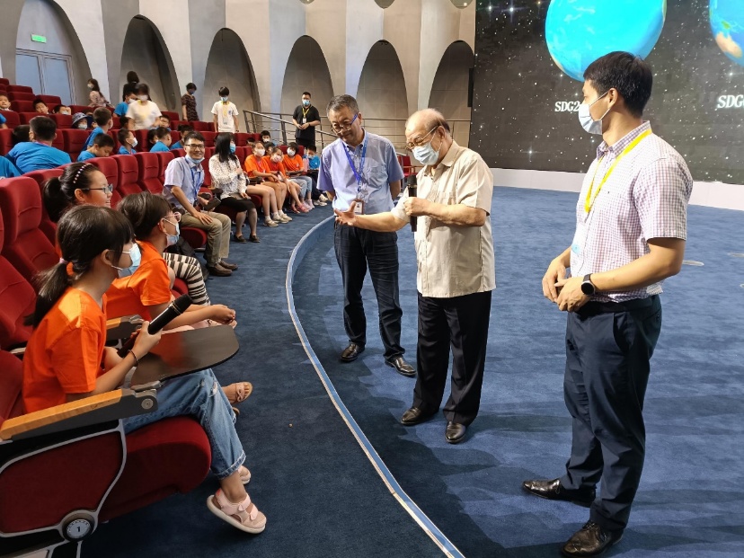 精彩的报告激发了孩子们对科学研究特别是遥感技术的极大兴趣,他们高高地举起小手向童爷爷踊跃提问。童庆禧耐心亲切地一一解答,并对孩子们广博的知识和积极思考的精神给予赞许和肯定,这也极大地鼓舞了大家的热情和信心。活动现场互动氛围热烈。