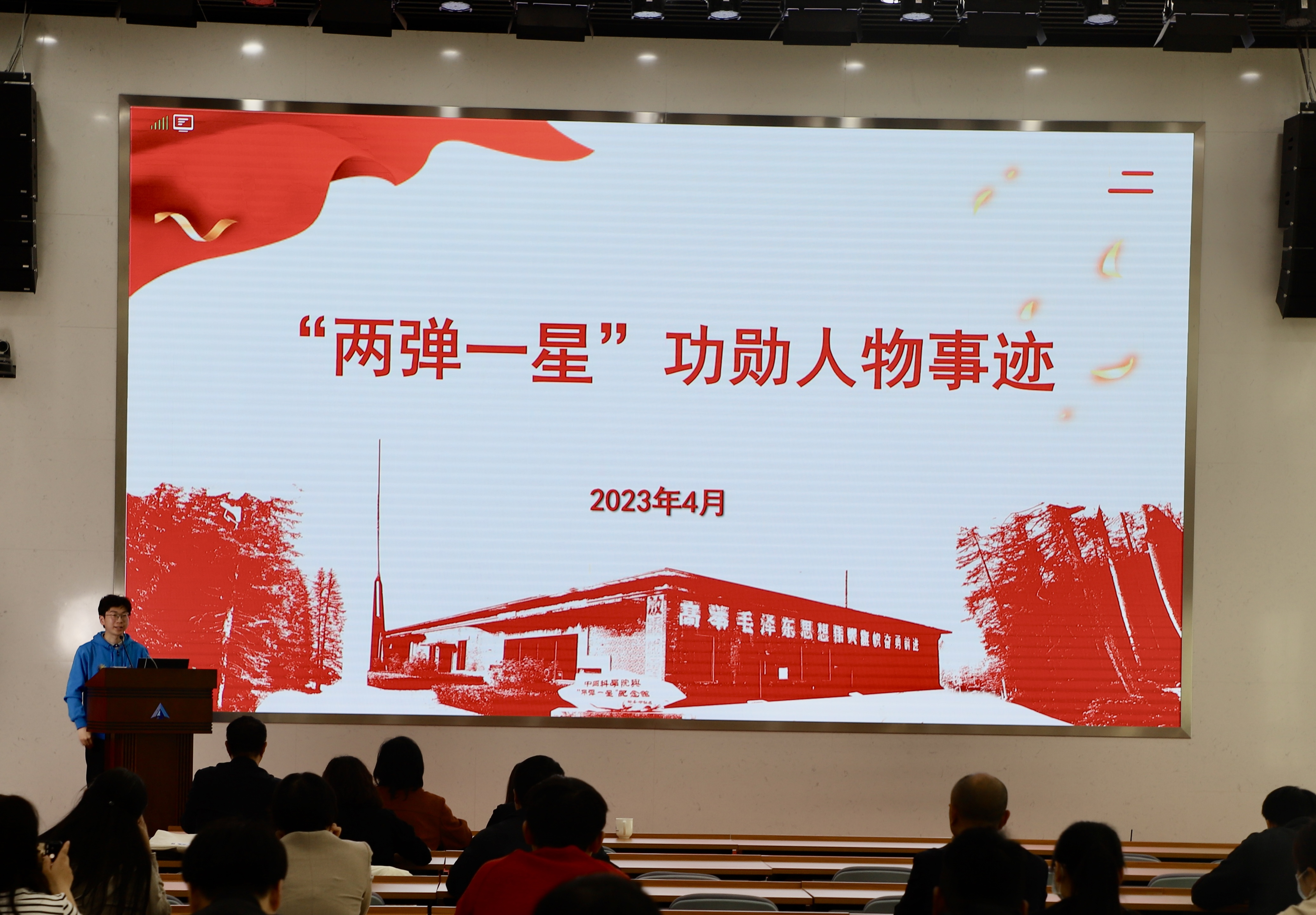 中国科学院大学党委常委、副校长牛晓莉出席活动并讲话。牛晓莉说,“两弹一星”是新中国建设成就的重要象征,是中华民族的荣耀与骄傲,也是人类文明史上的一个勇攀科技高峰的空前壮举。“两弹一星”研制过程中孕育的“两弹一星”精神和爱国、创新、求实、奉献、协同、育人的科学家精神,正是中国共产党人精神谱系的重要组成部分。希望通过宣讲,更好激励新时代科技工作者坚持“四个面向”,不断向科学技术广度和深度进军,为实现中华民族伟大复兴而努力奋斗。