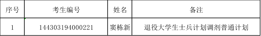 考生窦栋新系退役大学生士兵计划,申请由退役大学生士兵专项计划调剂至普通计划录取,根据北京市相关文件要求,该考生可按规定享受退役大学生士兵初试加分政策。经核查,该考生符合研究生入学考试复试要求,现将补充复试名单予以公示。